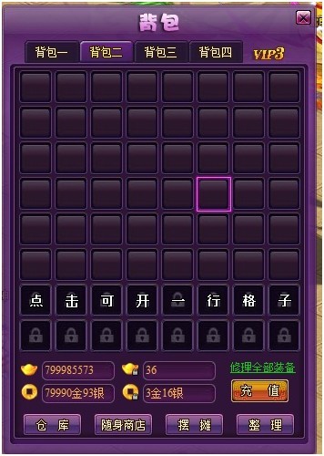 3) 兑换系统增加背包袋兑换功能,原拥有背包袋并装备在身上的玩家在更新后背包袋将直接替换为格子数,没装备在身上的背包袋可以在兑换界面兑换成道具——小金砖,金砖,大金砖