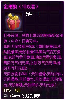 10. 新增伙伴——【超级金刚狼】,在帝都展示的npc处以礼包形式出售,分物攻套和斗攻套,随包附赠9本天阶技能书及9本Ⅲ阶天赋技能书