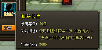 特殊说明:使用神秘锦囊或者缤纷锦囊,分别可以获得“神秘卡片”和“缤纷卡片”。使用神秘卡片后可随机获得一张“桃园结义”、“五虎上将”组合中的三国名将卡。
