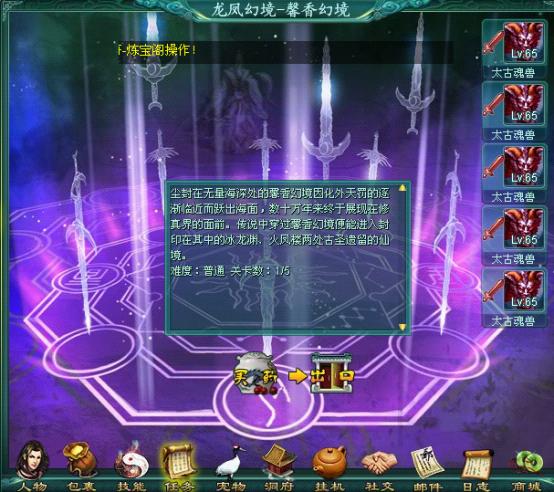 "龙凤幻境"副本分为5关,挑战每关关卡没有额外的奖励,过完五关通关的时候系统会随机奖励宠物高级技能碎片包一个、宠物内丹精华包一个。碎片包和精元包为绑定物品,开启包裹得到的宠物高级技能碎片和内丹精元为非绑定物品,可以交易和寄售。每收集10个相同的碎片都可以在“无量云都-云都老祖”处兑换为相应的高级技能书,供进阶后的宠物使用。正因为龙凤幻境盛产高级宠物需要的高级技能碎片和内丹精华,所以江湖人又称其为上古圣兽的栖息之所。