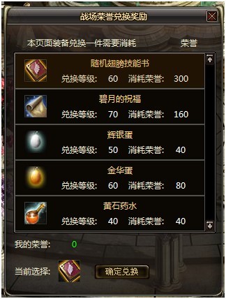 打开战场管理员对话面板,点击“战场荣誉兑换奖励”