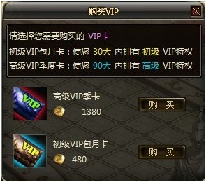 高级VIP特权概念:使用高级VIP季卡,即可拥有高级VIP特权,如果用户之前使用过初级VIP包月卡,则初级VIP包月卡的剩余时间直接累计进入高级VIP特权时间。